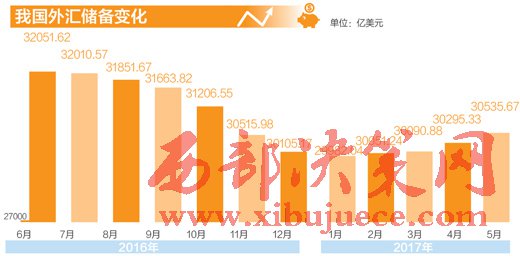 中國(guó)人民銀行最新公布的數(shù)據(jù)顯示,5月末,我國(guó)外匯儲(chǔ)備規(guī)模為30536億美元,較4月末小幅上升240億美元,增幅0.8%,連續(xù)第四個(gè)月出現(xiàn)回升。今年1月,外匯儲(chǔ)備跌破3萬(wàn)億美元,此后開(kāi)始連續(xù)回升。