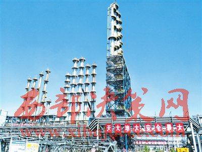 6月7日上午,在鄂托克經(jīng)濟開發(fā)區(qū),鄂爾多斯8000噸太陽能級多晶硅改擴項目建設(shè)現(xiàn)場一派動人景象。97米高的精餾塔在湛藍的天空下巍然屹立。塔半腰,工人們站在鋼格柵上檢查管口。地面上,三三兩兩的工人們有的在搬運物料管,有的在焊接管口。“叮叮哐哐”的施工聲和“天大地大 安全最大”的大紅條幅勾勒出一幅歡快、縝密的施工圖。