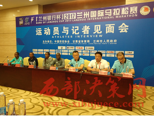 西部決策網(wǎng)-西部大開發(fā)訊(杜杰 帥華鋒)6月9日14時(shí),2017蘭州國際馬拉松賽運(yùn)動員與記者見面會在甘肅大劇院新聞發(fā)布廳舉行。