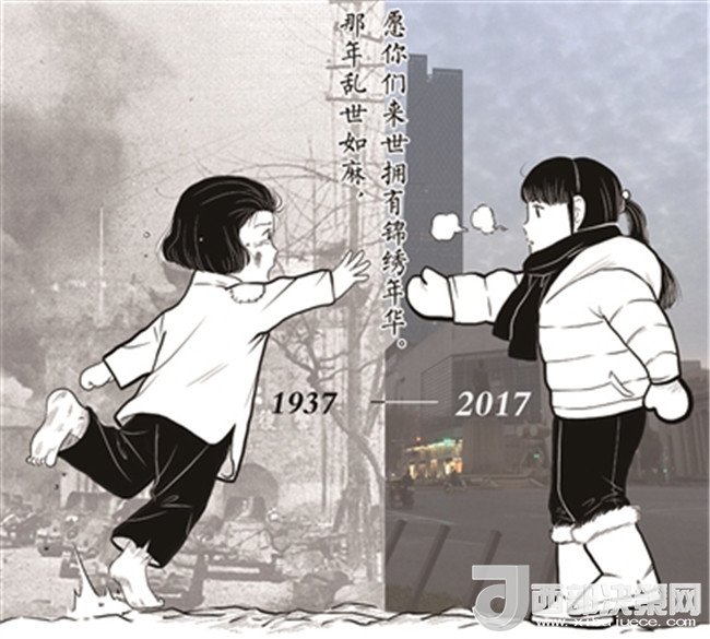 “那年亂世如麻,愿你們來世擁有錦繡年華”。昨日,這句話被許多網(wǎng)友轉(zhuǎn)發(fā)提及,這句話來自于一張漫畫圖,圖中兩名分別來自1937年和2017年的女孩隔空相對,一人身邊戰(zhàn)火紛飛,一人身處和平現(xiàn)代。這幅圖的作者朱彥告訴記者,該圖創(chuàng)作于去年12月,今年有網(wǎng)友把原圖中的2016年換成了2017年,之所以想要畫這張圖,是因為想讓大家不要忘記這段歷史,而網(wǎng)友的大量關注在他們意料之外,“說明我們想表達的情緒網(wǎng)友感受到了。”