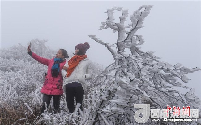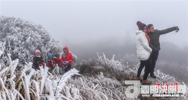 12月17日,福建省長汀縣天井山迎來首場霧凇,吸引不少游客前來觀賞。根據(jù)天氣預(yù)報顯示,未來的一周,長汀縣最低氣溫低至零下2攝氏度,部分高海拔地區(qū)將出現(xiàn)凍雨現(xiàn)象。 (張平 攝)
