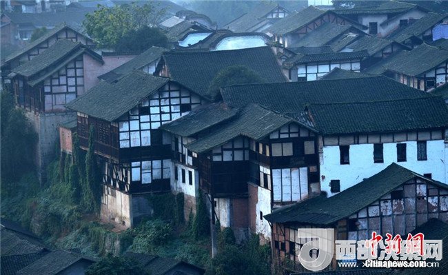 12月19日,晨光中的福寶古鎮(zhèn)。四川瀘州合江縣福寶鎮(zhèn)位于川渝黔交界處的大漕河畔,始建于元朝初年,保存較好的明清吊腳樓隨山勢起伏,錯落有致,被譽(yù)為四川鄉(xiāng)村民居的活化石。 (記者 劉忠俊 攝)