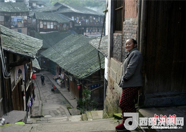 12月19日,晨光中的老人背著孩子行走在福寶古鎮(zhèn)街頭。四川瀘州合江縣福寶鎮(zhèn)位于川渝黔交界處的大漕河畔,始建于元朝初年,保存較好的明清吊腳樓隨山勢起伏,錯落有致,被譽(yù)為四川鄉(xiāng)村民居的活化石。 (記者 劉忠俊 攝)