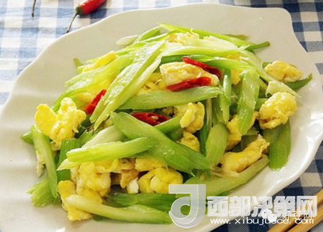 芹菜250g、雞蛋3個(gè)、油、鹽、小辣椒、料酒、糖、蔥、花椒、香油。