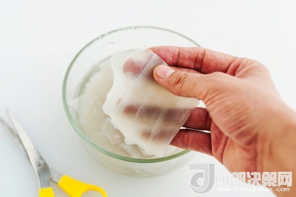 撈出放到清水里浸泡著備用,可防止粉皮黏連成坨。