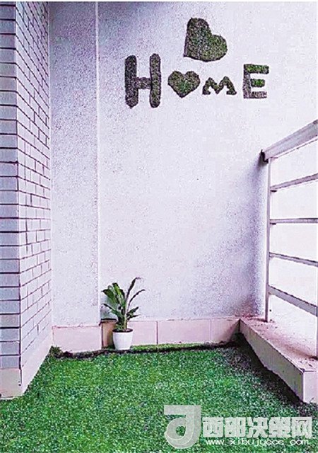 要說最有特色的,就是寢室陽臺(tái)上設(shè)置了“高爾夫草坪”。青綠色的草皮地板,柔軟清新,別具一格。