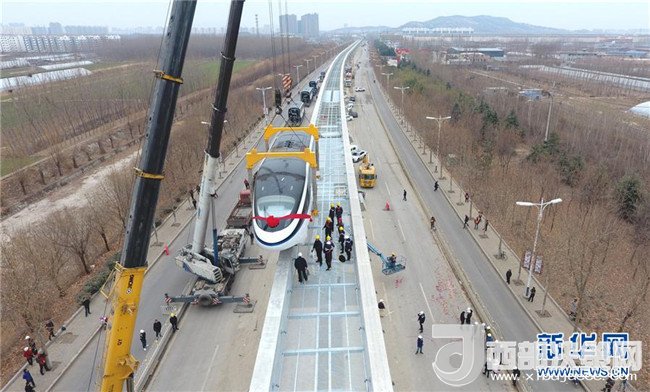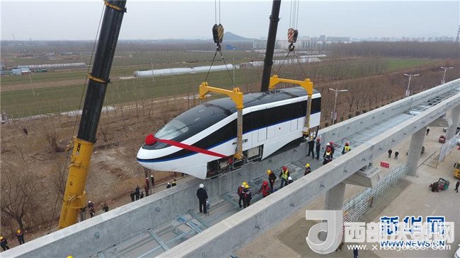 1月3日,在山東省鄒城市,工作人員進行旅游云軌“孔孟旅游快線”機車上梁作業(yè)。當日,孔子故里曲阜、孟子故里鄒城之間的云軌“孔孟旅游快線”完成機車上梁作業(yè)。這條旅游快線串聯起“三孔”景區(qū)、高鐵曲阜東站和曲阜南站、九龍山景區(qū)、孟廟孟府景區(qū)等。云軌是中國首條自主知識產權的跨座式單軌列車,類似于“空中小火車”,最高時速可達80公里。(田楊 攝)
