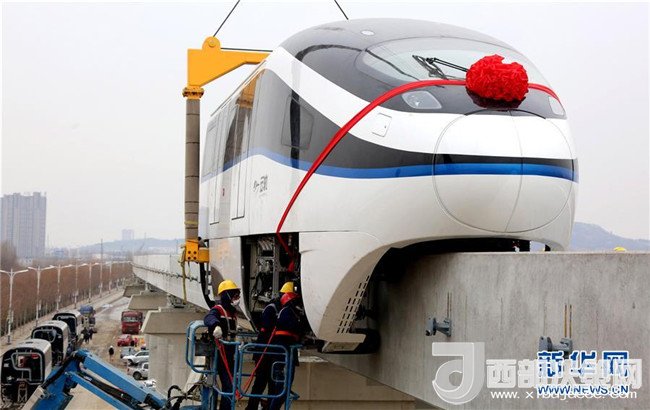 1月3日,在山東省鄒城市,工作人員進行旅游云軌“孔孟旅游快線”機車上梁作業(yè)。當日,孔子故里曲阜、孟子故里鄒城之間的云軌“孔孟旅游快線”完成機車上梁作業(yè)。這條旅游快線串聯起“三孔”景區(qū)、高鐵曲阜東站和曲阜南站、九龍山景區(qū)、孟廟孟府景區(qū)等。云軌是中國首條自主知識產權的跨座式單軌列車,類似于“空中小火車”,最高時速可達80公里。(呂衛(wèi)鋒 攝)