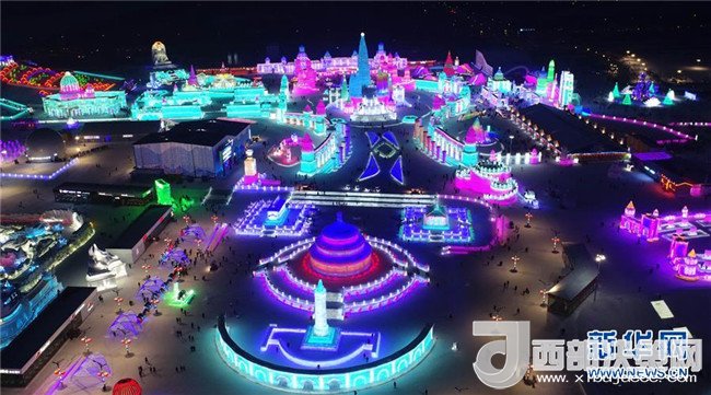 這是航拍的流光溢彩冰雪大世界園區(qū)(1月4日攝)。時下正值嚴(yán)冬,第十九屆哈爾濱冰雪大世界每天吸引著來自天南海北的眾多游客。夜幕初降,冰雪大世界園區(qū)流光溢彩、如夢似幻,成為冰雪童話世界。本屆哈爾濱冰雪大世界占地80萬平方米,用冰量18萬立方米,用雪量15萬立方米。