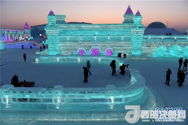 這是冰雪大世界園區(qū)一角。時下正值嚴(yán)冬,第十九屆哈爾濱冰雪大世界每天吸引著來自天南海北的眾多游客。夜幕初降,冰雪大世界園區(qū)流光溢彩、如夢似幻,成為冰雪童話世界。本屆哈爾濱冰雪大世界占地80萬平方米,用冰量18萬立方米,用雪量15萬立方米。