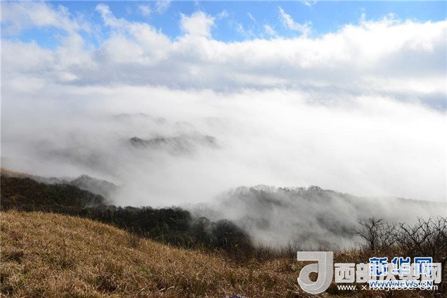 這是1月7日在貴州省黔東南苗嶺國家地質(zhì)公園拍攝的云海景觀。寒冬時(shí)節(jié),位于貴州省黔東南州的苗嶺國家地質(zhì)公園出現(xiàn)云海霧凇景觀,原始森林和草場在云海中若隱若現(xiàn),美若畫卷。(楊文斌攝)