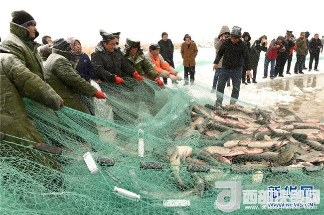 寒冬時節(jié),內(nèi)蒙古巴彥淖爾市杭錦后旗鴻雁湖進入冬季捕魚季,湖面上呈現(xiàn)出一派“人歡魚躍”的豐收景象。