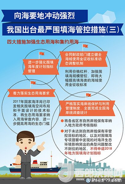 林山青表示,結合圍填海督察整改工作,國家海洋局將聚焦十個“一律”、三個“強化”,采取“史上最嚴圍填海管控措施”。