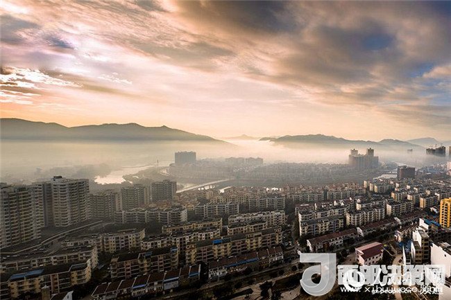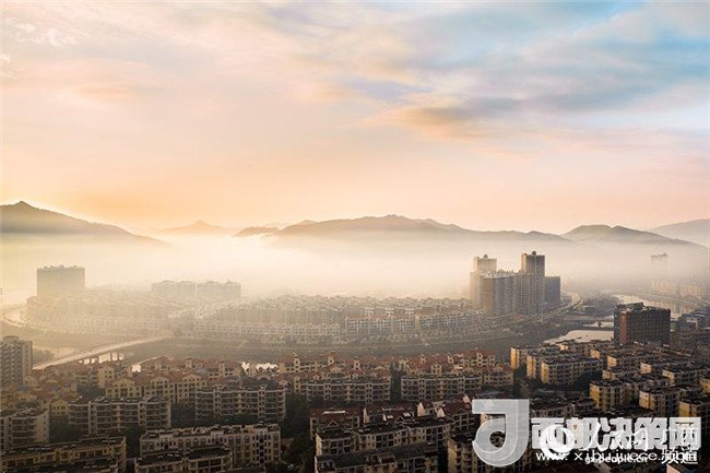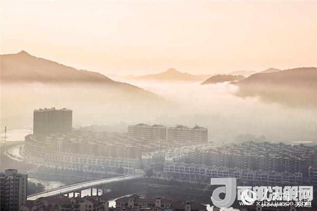 1月18日電1月18日,廣西上思縣城出現了平流霧奇觀,在朝陽渲染下的金黃色霧氣在低空緩緩地流動,樓房在霧氣中若隱若現,宛若仙境。
