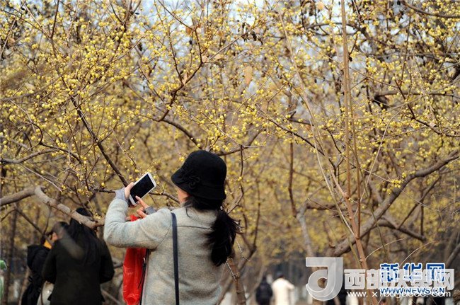 1月21日在西安市興慶公園內(nèi)拍攝的臘梅。
