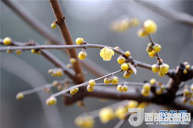 近日,西安市興慶公園內(nèi)的臘梅凌寒開放,吸引眾多游客前來賞花。張博文攝