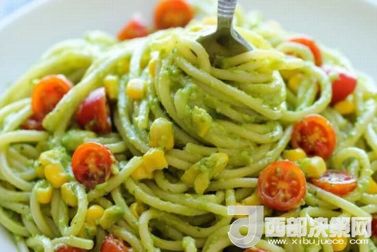 牛油果Pasta 將牛油果切塊,和檸檬汁、羅勒葉、大蒜一起放進攪拌機打成泥狀,和煮好的Pasta一起攪拌,Pasta頓時也變身小清新。