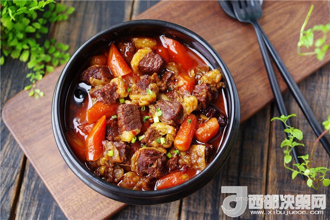 11.放入胡蘿卜;接通電源,選擇“紅燒牛羊”程序;口感選“標(biāo)準(zhǔn)”即可;