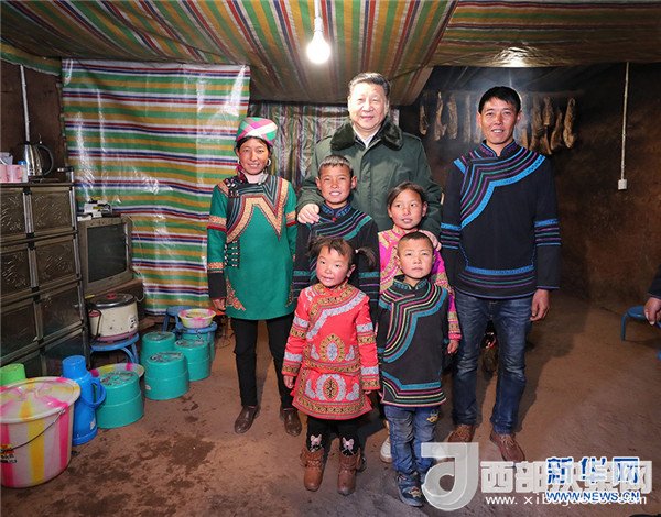 這是習(xí)近平在涼山彝族自治州昭覺(jué)縣三岔河鄉(xiāng)三河村同貧困戶(hù)吉好也求一家合影。記者 謝環(huán)馳 攝