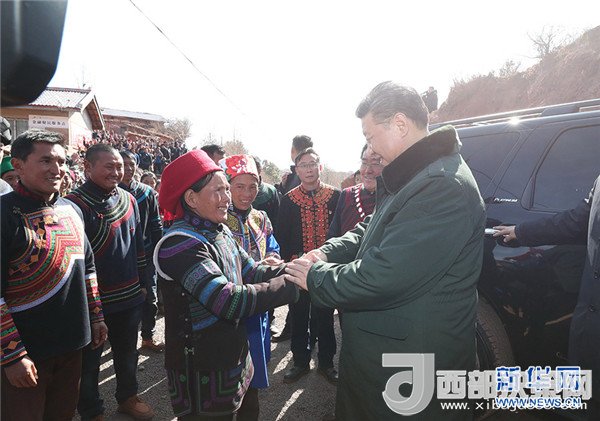 這是習(xí)近平在涼山彝族自治州昭覺(jué)縣解放鄉(xiāng)火普村同鄉(xiāng)親們道別。記者 謝環(huán)馳 攝