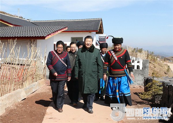 這是習(xí)近平在涼山彝族自治州昭覺(jué)縣解放鄉(xiāng)火普村了解易地扶貧情況。記者 謝環(huán)馳 攝