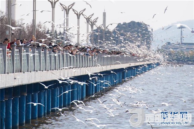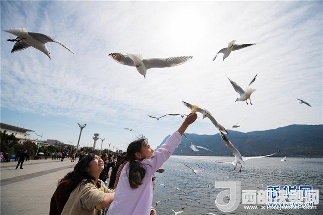 當日,云南省昆明市陽光明媚,眾多市民和游客來滇池海埂觀景大道觀賞、投喂紅嘴鷗。每年秋冬季大批紅嘴鷗飛臨昆明越冬。人鷗同樂成為昆明的一道風(fēng)景線。記者胡超攝