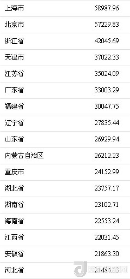 上海、北京是2017年全國(guó)僅有的居民人均可支配收入在“5萬元俱樂部”的地區(qū);浙江居民人均可支配收入達(dá)到42045.69元,屬于“4萬元俱樂部”的唯一成員。