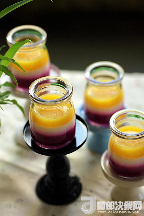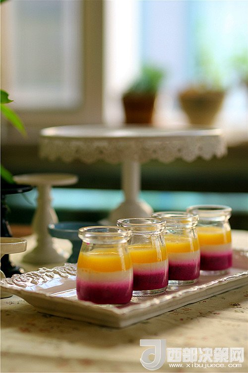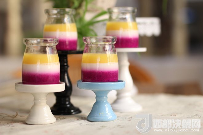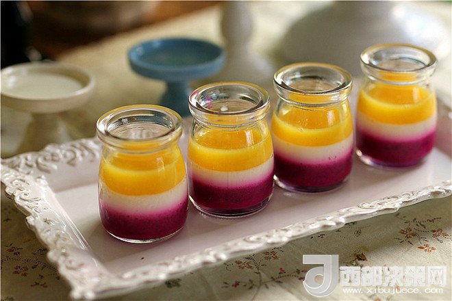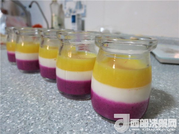 4.必須是在一種果汁凝固后才可以將另一種汁加入,否則容易混色。