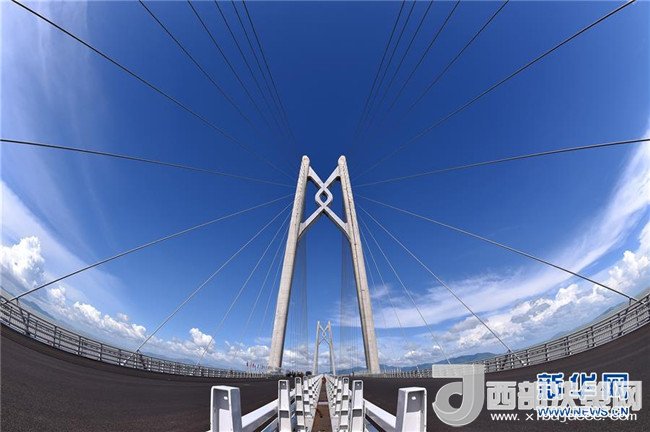港珠澳大橋上的“中國(guó)結(jié)”造型橋塔(2017年6月6日攝)。記者 梁旭 攝