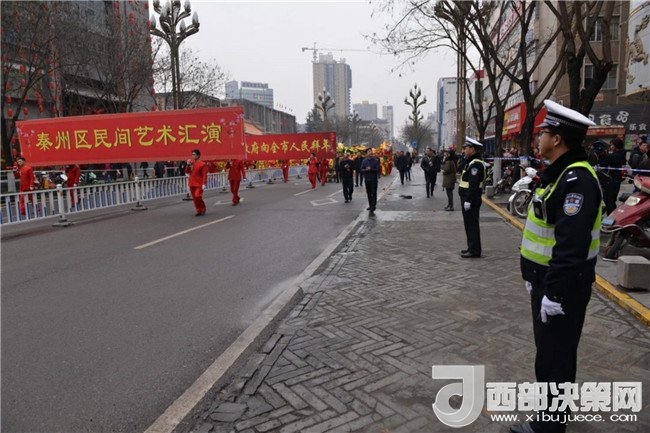 西部決策網(wǎng)-西部大開發(fā)訊 (帥華鋒 通訊員 馬存福 劉冀遠(yuǎn)) 2月27日(農(nóng)歷正月十二)上午,甘肅天水市秦州區(qū)鑼鼓喧天、龍騰獅舞,處處洋溢著歡樂喜慶的節(jié)日氛圍,引得市民紛紛駐足觀看。為保障2018年秦州區(qū)春節(jié)民間藝術(shù)匯演活動順利舉行,天水公安交警部門根據(jù)轄區(qū)實際,結(jié)合歷年活動保障經(jīng)驗,科學(xué)制定勤務(wù),提前向社會發(fā)布出行提示信息?;顒赢?dāng)天,全體執(zhí)勤交通民警及協(xié)管員按時到崗到位,對合作巷十字、藉濱橋十字、重新街北口等路段進(jìn)行臨時交通管制,指揮車輛分流繞行,引導(dǎo)過往群眾有序觀看。