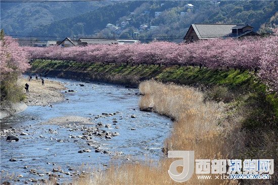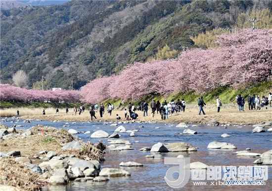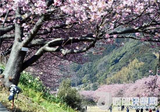 在太平洋沿岸的日本伊豆半島,河津櫻競相綻放,吸引了眾多游客。記者馬平攝