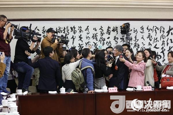 楊偉民接受記者“圍堵”采訪。(中國(guó)經(jīng)濟(jì)周刊記者肖翊攝)