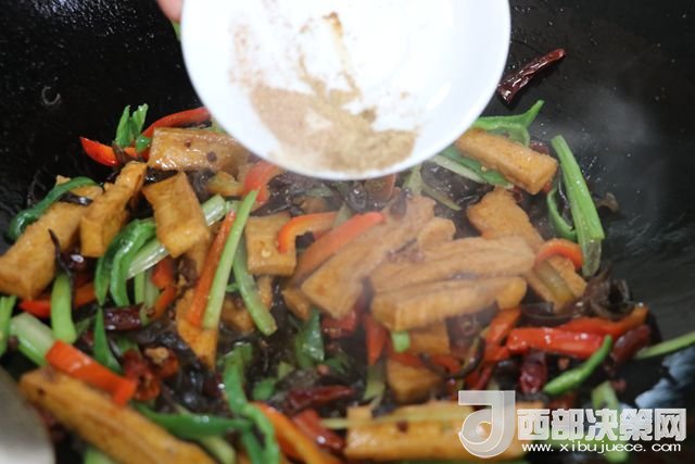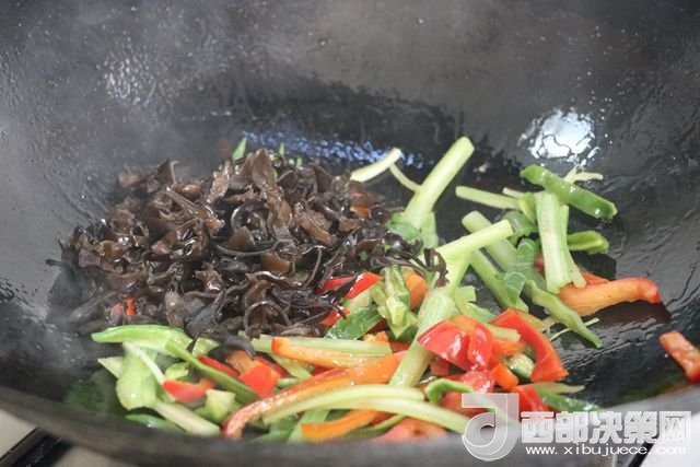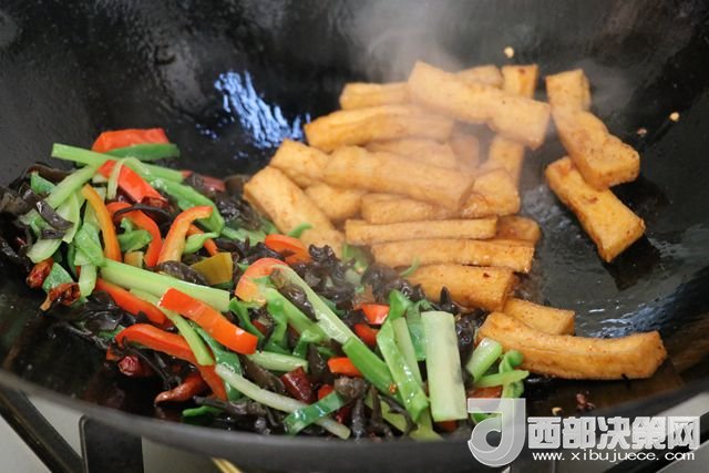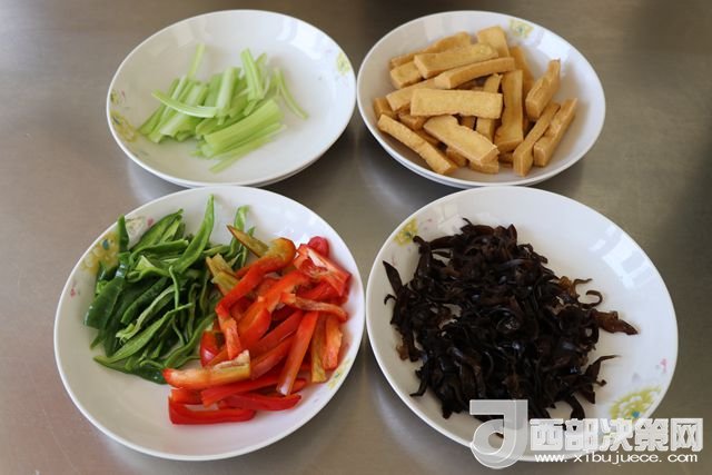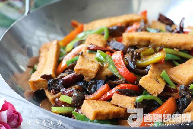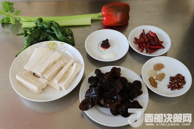 主料:豆腐 230克 西芹 50克 青椒 80克 大辣椒 110克 干辣子 7克 木耳 65克