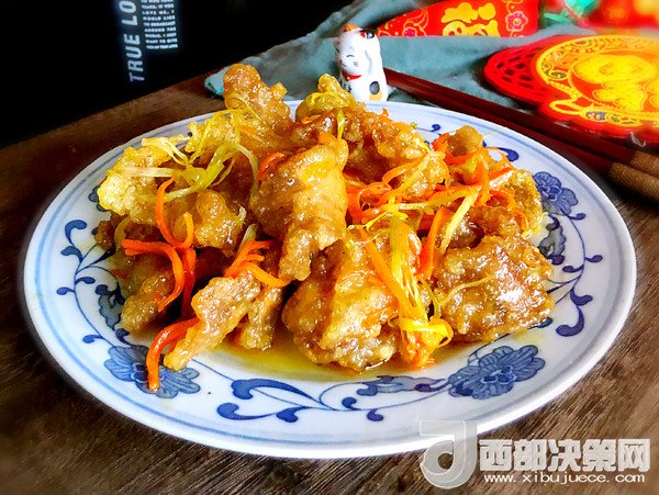鍋包肉是一道東北風(fēng)味菜,滿族美食。 就是將豬里脊肉切片腌入味,裹上炸漿下鍋炸至金黃色撈起,再下鍋拌炒勾芡即成。成菜色澤金黃,口味酸甜。從小到大,我家女兒對酸甜味的菜肴那是情有獨(dú)鐘!