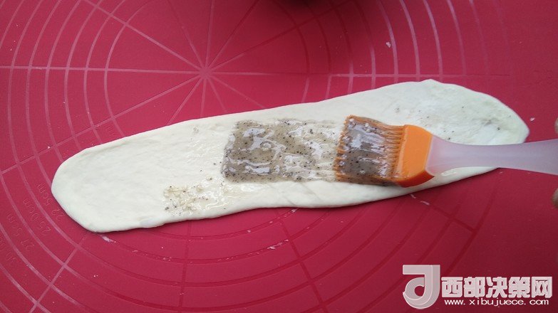 6.搟成長(zhǎng)條形薄片刷上油酥