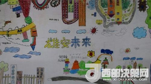 北京市朝陽區(qū)實驗小學(xué)雄安校區(qū)學(xué)生們畫筆下的雄安。(翻拍)