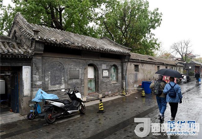 游客從北京西城區(qū)的楊椒山祠外走過(4月13日攝)。 新華社記者 羅曉光 攝