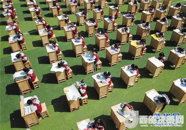 4月19日,安徽省合肥市蜀山區(qū)井崗鎮(zhèn)新城小學(xué)學(xué)生參加“善待地球,童繪藍(lán)天——我與地球的故事”繪畫活動。新華社發(fā)(葛宜年 攝)