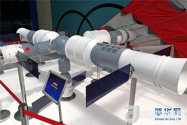 航天展會(huì)現(xiàn)場(chǎng)的空間站展品。新華網(wǎng)才萌攝