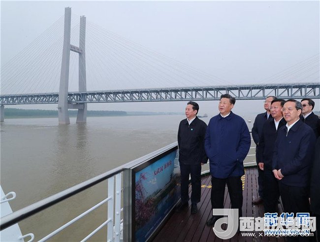 為了開好這次座談會,4月24日至25日,習(xí)近平先后在湖北省委書記蔣超良、省長王曉東,湖南省委書記杜家毫、省長許達哲陪同下,深入湖北宜昌市和荊州市、湖南岳陽市以及三峽壩區(qū)等地,考察化工企業(yè)搬遷、非法碼頭整治、江水污染治理、河勢控制和護岸工程、航道治理、濕地修復(fù)、水文站水文監(jiān)測工作等情況,實地了解長江經(jīng)濟帶發(fā)展戰(zhàn)略實施情況。