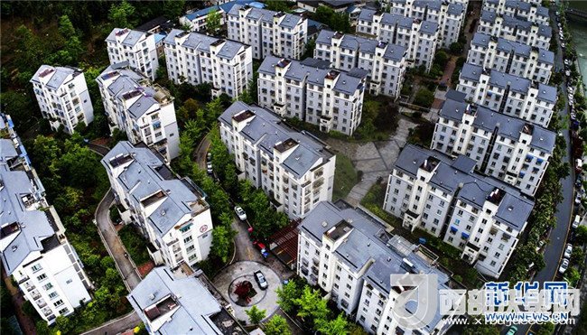由浙江省寧波市援建的青川縣城東山小區(qū)(4月25日無人機拍攝)。汶川地震后的2009年12月,東山小區(qū)成為當?shù)氐谝粋€建成的安置小區(qū),首批408戶災(zāi)民搬進了新居。新華社記者陶明攝