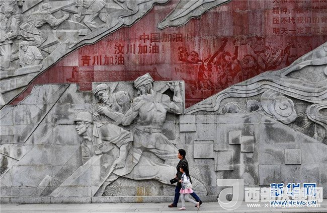4月26日,市民從感恩奮進墻前走過。感恩奮進墻是花崗巖浮雕墻,長230米,高12米,再現(xiàn)了青川的風土人情、歷史文化和眾志成城、自強不息的抗震救災(zāi)精神、地震災(zāi)后重建和生態(tài)青川的壯美畫卷。新華社記者陶明攝