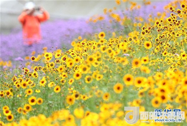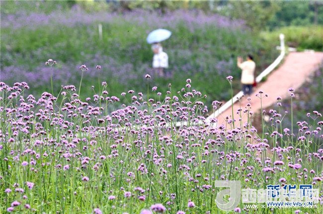 時下,廣西南寧市良慶區(qū)那馬鎮(zhèn)壇良村壇板坡100多畝馬鞭草和非洲雛菊競相盛放,田園風光吸引了不少游客前來觀賞。 新華社記者 周華 攝