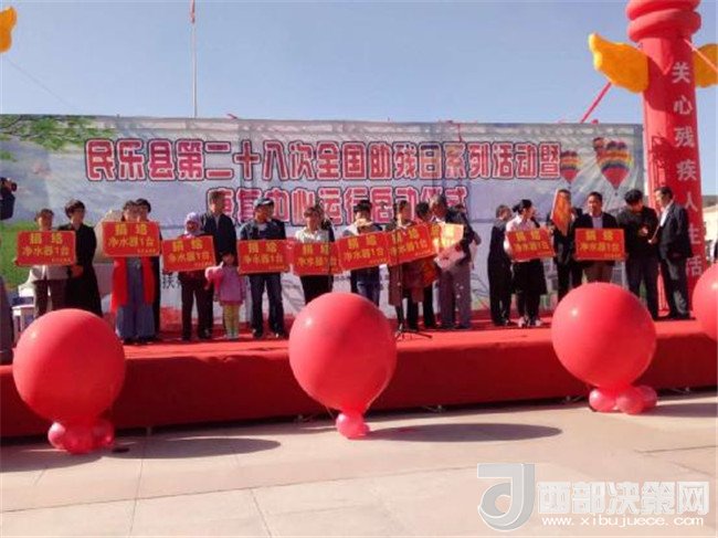 在活動(dòng)現(xiàn)場(chǎng),為殘疾人代表捐贈(zèng)了由甘肅省殘疾人福利基金會(huì)、市殘聯(lián)捐贈(zèng)的凈水器100臺(tái),為200名不能行走的殘疾人捐贈(zèng)了價(jià)值9.6萬元的輪椅,為各鎮(zhèn)和社管委捐贈(zèng)了由澳大利亞魏基成天籟列車捐贈(zèng)的價(jià)值100多萬的助聽器180臺(tái),為全縣185名殘疾學(xué)生代表每人發(fā)放了助學(xué)金500元。