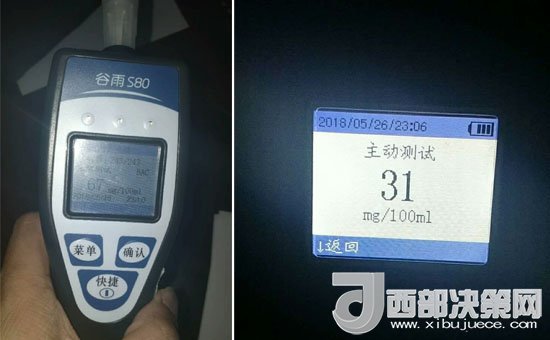 23點6分,經(jīng)對一司機進行酒精測試,測得酒精含量為31mg/100ml;23時10分,查獲另一名司機酒精含量為67mg/100ml。兩人屬于飲酒駕駛。