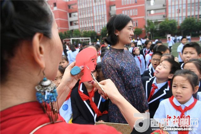 活動(dòng)現(xiàn)場,15個(gè)國家級和市級非物質(zhì)文化遺產(chǎn)項(xiàng)目為重慶沙坪壩西永第一小學(xué)校的師生帶來一場豐盛文化遺產(chǎn)大餐,讓師生們近距離感受了中華優(yōu)秀傳統(tǒng)文化的魅力。圖為活動(dòng)現(xiàn)場學(xué)生們參觀非物質(zhì)文化遺產(chǎn)項(xiàng)目。 陳超 攝
