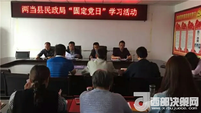 西部決策網(wǎng)——西部大開(kāi)發(fā)訊 (帥華鋒 通訊員 馬存福 趙雪瓊)5月29日上午,甘肅兩當(dāng)縣民政局在三樓會(huì)議室開(kāi)展“固定黨日”學(xué)習(xí)活動(dòng),全體黨員職工參加。民政局長(zhǎng)、黨支部書(shū)記田春參加并主持學(xué)習(xí)活動(dòng)。