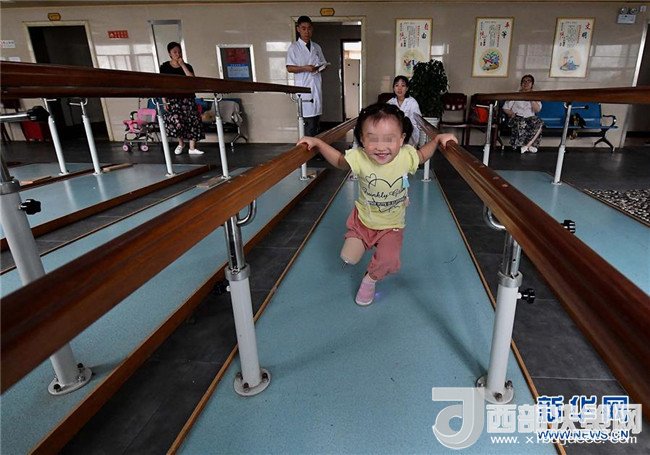 5月29日,笑笑在康復(fù)室里借助器械練習(xí)單腿站立和跳躍,增強腿部肌肉力量和協(xié)調(diào)性。