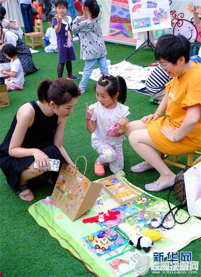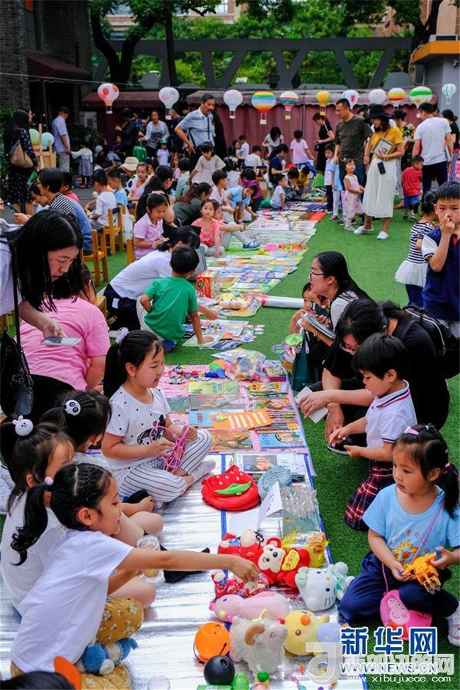 6月4日,孩子和家長(zhǎng)們?cè)谛@“跳蚤市場(chǎng)”中買賣玩具和書籍。新華社記者 徐昱 攝