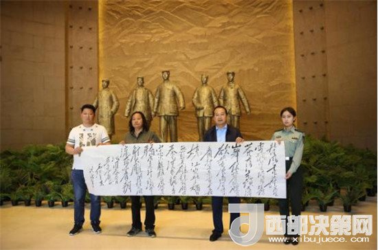 西部決策網(wǎng)—西部大開發(fā)訊(帥華鋒 通訊員 陳彥榮 齊彩云)在這綠意盎然、鳥語花香的美好時(shí)節(jié),“紅色南梁”迎來了中國(guó)“毛體”書法家協(xié)會(huì)會(huì)員、中國(guó)硬筆書法協(xié)會(huì)會(huì)員、中國(guó)書畫家協(xié)會(huì)會(huì)員、金陵書畫院理事、江西廬山毛主席書法研究院高級(jí)研究員、中國(guó)毛澤東詩(shī)詞研究會(huì)會(huì)員、韶山毛澤東書法藝術(shù)研究會(huì)會(huì)員王洪濤老師,他帶著對(duì)華池革命老區(qū)的深情厚誼和對(duì)劉志丹、謝子長(zhǎng)、習(xí)仲勛等陜甘邊革命先輩舍生忘死、救民出水火的崇敬之意,長(zhǎng)途跋涉一路輾轉(zhuǎn),向南梁革命紀(jì)念館捐贈(zèng)毛主席詩(shī)詞書法作品。